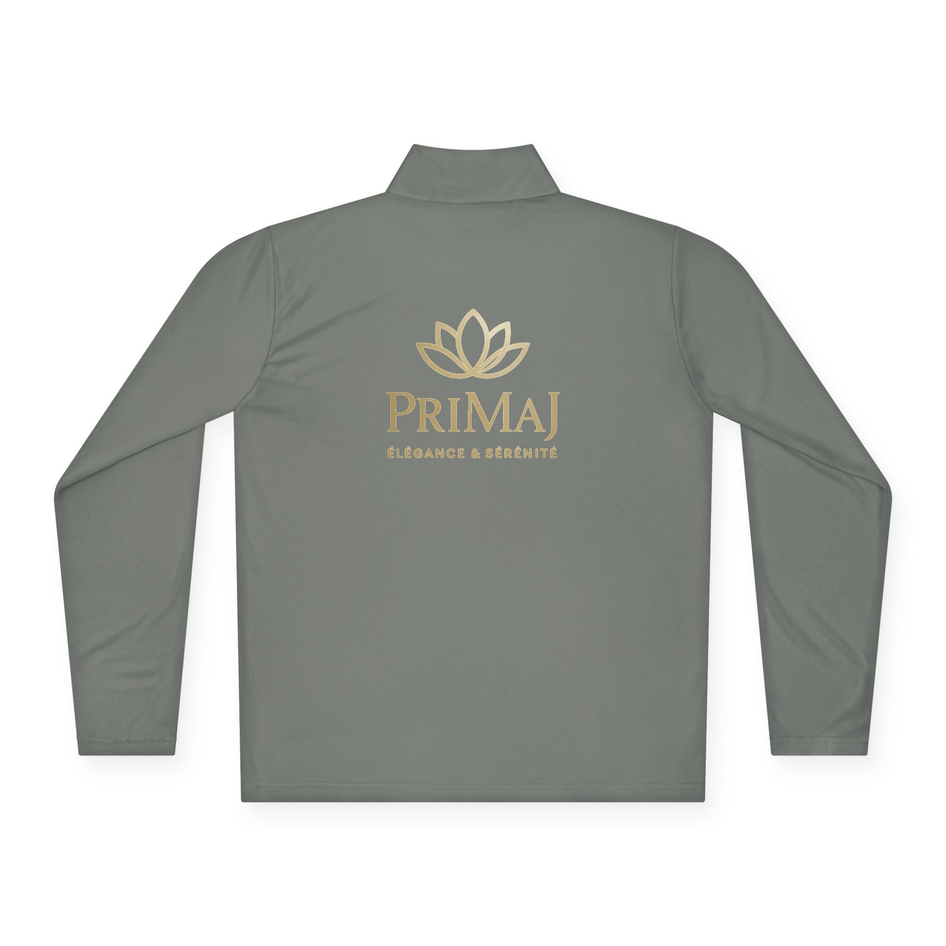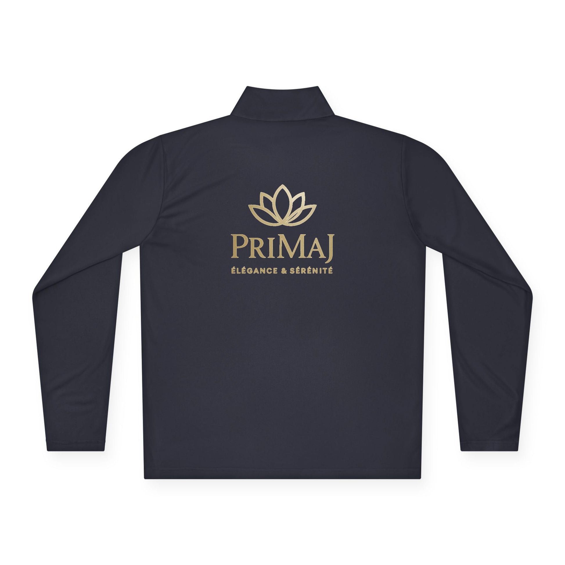 Découvrez notre pull quart-zip premium PriMaJ, conçu pour allier performance et style raffiné. Léger, respirant et orné du logo Lotus doré brodé, il vous accompagne du studio de yoga à vos journées actives.